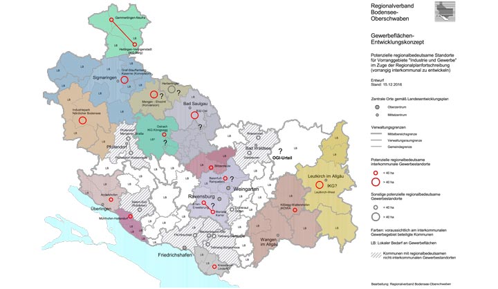 Im Rahmen der anstehenden Fortschreibung des Regionalplans ist der Regionalverband gefordert, auf der Basis von § 11, Abs. 3, Nr. 5 des Landesplanungsgesetzes (LplG) „Schwerpunkte für Industrie, Gewerbe- und Dienstleistungseinrichtungen“ auszuweisen. Dies erfolgt vor dem Hintergrund, dass die Flächenverfügbarkeit in der Region Bodensee-Oberschwaben aus vielerlei Gründen in aller Regel ziemlich begrenzt ist und die Debatte zu den Flächensparzielen bereits zu einer sehr restriktiven Handhabung bei der Inanspruchnahme neuer Flächen in den Flächennutzungsplänen durch die Genehmigungsbehörden geführt hat. Darüber hinaus sind die erforderlichen Rechtsverfahren bei der Genehmigung neuer Gebiete heute oftmals sehr komplex, langwierig und aufwändig.